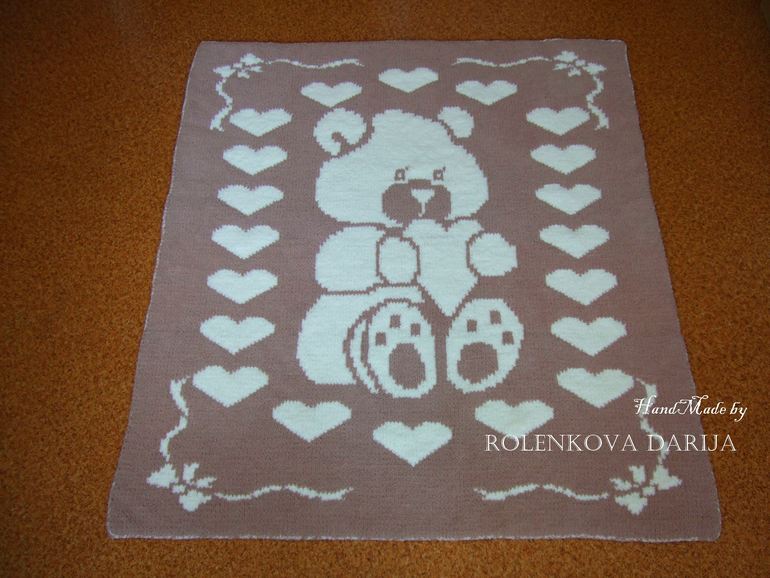 Доброго времени суток всем!!! Оцените мою новую работу. Детский плед, связанный спицами в технике двойного жаккарда.