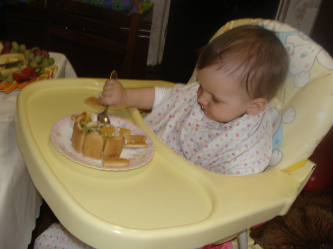 Ложкой ест, оказывается, а я и не знала)) Пеленкой её накрыла, надо же, почти не испачкалась.