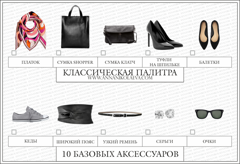 - примеры Базовых аксессуаров в цвете Вашей базовой палитры;