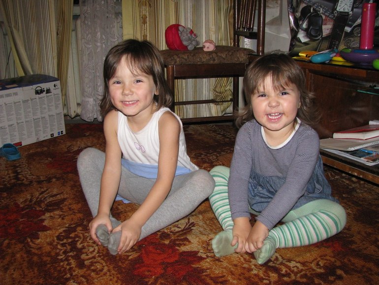 Маргоша вообще кабан. Вот интересно, кормлю обеих одинаково, аппетит у обеих прекрасный, только Лера тощик, а Маргоша — толстушка. Маргоша вся в меня, я тоже была крепыш в детстве ))