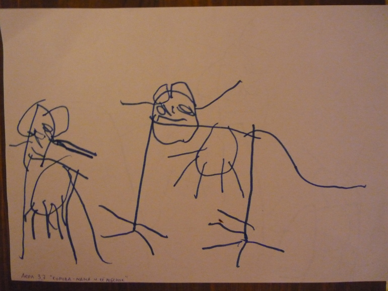 Мне вот интересно, откуда она вообще это взяла, такие представления о коровах и технике их рисования?? И с чего вдруг коровы, мы про коров в эти дни вообще ничего не говорили...