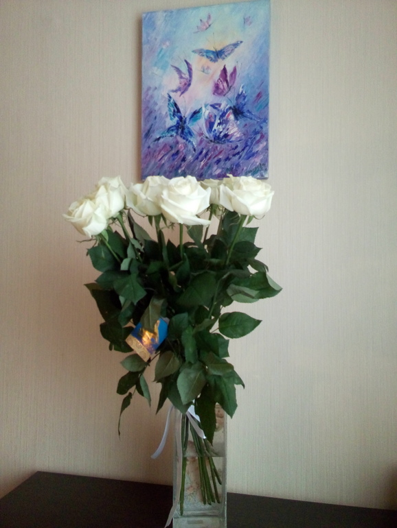 Утром звонок в домофон, курьер! Цветы!!! Удивлению не было предела, когда я увидела подпись в открытке!!! Девочки, просто бесподобный сюрприз!!! Спасибо большое))( настрящее чудо!)))