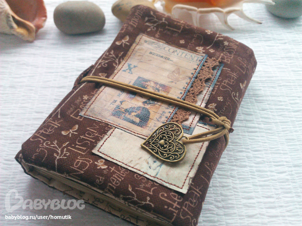 Софтбук с нуля. Формат А6. Блок из бумаги плотностью 65г/кв.м., 120листов (240 стр.), из них 10 листов плотной, состаренной скрапбумаги, она подойдет для закрепления на нее памятных вещиц, фото и т.д. Бумага тонирована-ароматизирована вареным кофе, некоторые страницы украшены штампами с использованием двух видов чернил. На двух скрап-страницах закреплены конвертики для мелочей. Обложка мягкая, комбинированная: снаружи качественная льняная ткань, внутри корейский хлопок, обложка проложена флисом, закладка из вощеного щнура, декорирована подвеской-монеткой. Картинки на обложке состарены, прошиты и покрыты лаком на водной основе. Софтбук закрывается вощеным шнуром с застежкой, сплетенной в технике макраме (квадратный узел), украшенной бусинами из дерева.