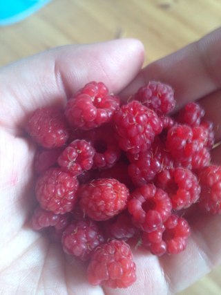 Все в первые: первые ягодки, которые дал куст и Полина первый раз в живую увидела как растет малина, и сама первый раз собрала ягодки.