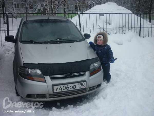 ... пошли мы с Алешей немного прогуляться, зашли в магазин за молочком, решили прогуляться до стоянки и почистить от мокрого и липкого снега нашу машину. Так как машину я выставила на продажу, мне нужны были фотки, открыла машину, завела, пошла чистить от снега. Алеша конечно сразу полез "рулить". Я дверь оставила открытой, пока я пошла почистить задни бампер... Алеша захлопнул дверь... и машина закрылась. Я все это дело просекла не сразу, только когда Алеша стал стучать в окошко, мол "мама, садись ко мне!". Вы бы видели меня, как же я испугалась! Подергала все двери, закрыто, багажник - закрыто... побежала к знакомому, он рядом работает в шиномонтаже, ничего естественно они сделать не смогли. В итоге, попросила постоять рядом с машиной помощника моего знакомого, а сама побежала домой за вторым комплектом ключей, слава Богу они у меня есть! Домой идти минут 5-7, бежала мне кажется я до дома целую вечность!!! Еще попала в снег с градом, в метель! В общем, прибежала я, открыла машину... сидит Алеша мой довольный... а я злая... Рассказала мужу все наше происшествие... не ругался, сказал только чтобы второй комплект ключей теперь с собой брала)))