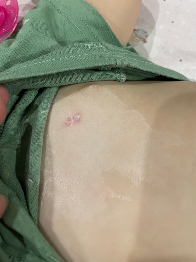 Здравствуйте, ребёнку годик, в апреле переболели розеолой, 3 мая началась температура 38 дня два держалась, потом пошла сыпь будто с гнойничком на кончике, сама сыпь похожа была на прыщик. Сдали кровь и пцр тест, кровь с высокими лейкоцитами, пцр тест приложу. Даже к платному не можем пока попасть инфекционисту, ближайшее только на 14 мая, сыпь выглядит сейчас так ( фото приложу )