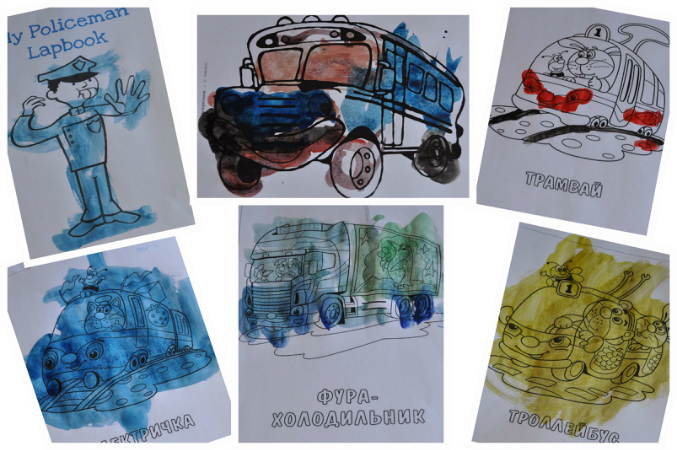 Из творчества только раскрашивали.Видимо пошел новый виток в рисовании,Давид стал использовать разные цвета красок,старается аккуратно красить.