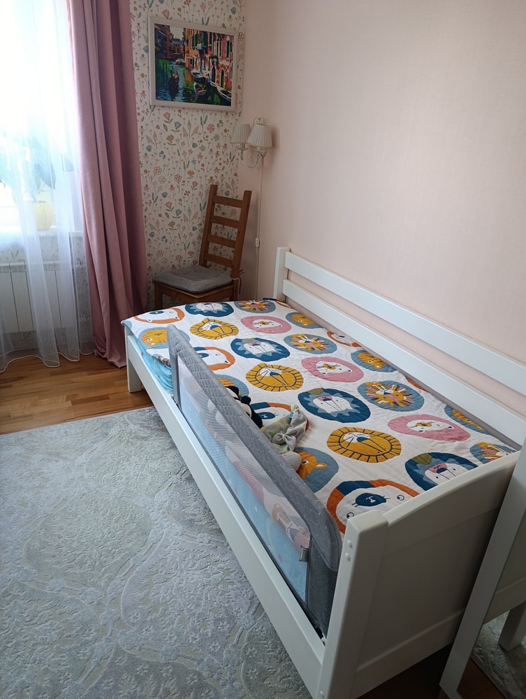 Постоянно какие то доделки были . Повесили шторы, переставили немного мебель из за замены кроватки на большую кровать, оставался плед, теперь и он на месте. Почти год с начала ремонта, результат очень радует, хоть и был вот такой промежуточный вариант полгода с лишним с малышковой кроватью. Дочкина комната наконец то готова. Плед двухсторонний, дочка выбрала светлую сторону