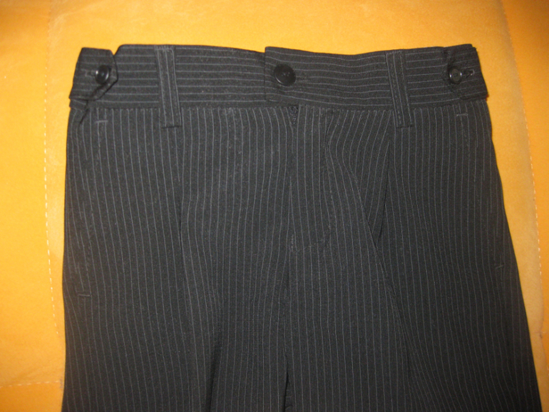 талия у брючек регулируется по-бокам пуговичками, по-бокам прорезные карманы.