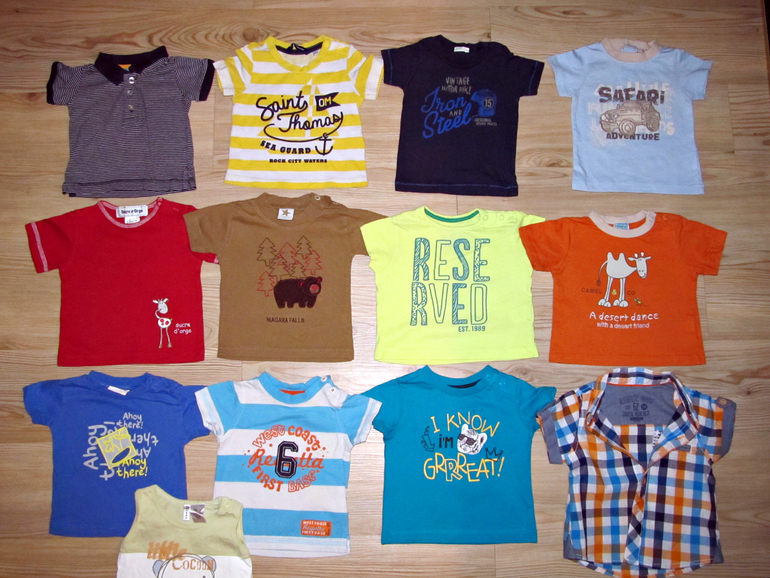 Одежда на мальчика ( от 0 до года где-то) Футболки, кофты, рубашки, штаны. Под катом еще фото. От 100 до 400 рублей за вещь.