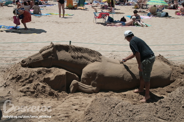 Ездили мы по совету моей знакомой в Бенидорм. Ну, сказать что б обплевались - нет. Народу туча на пляже, а так песоек светленький, море чистое, как и на нашем пляже в El Campello. В Бенидорме на пляже вот такие вот умельцы: