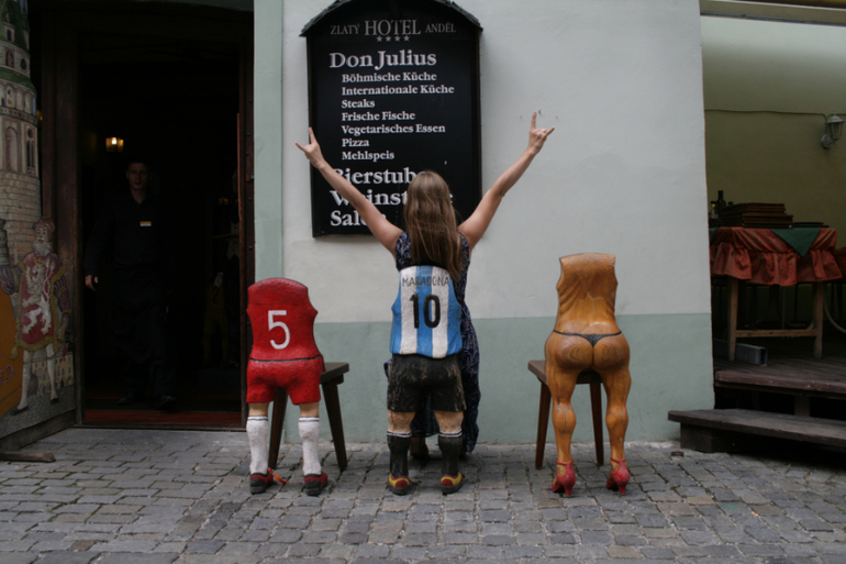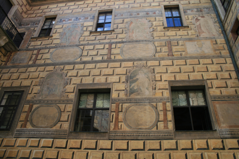Средневековый гостевой туалет. Треугольная "коробочка" в углу здания. Или на угле. Углу. Ну вы поняли. Сейчас "дырка" уже заделана, а раньше все нечистоты из туалета стекали напрямую во двор. Представляете вонищу??? Хозяйский же туалет был с другой стороны крепости и хозяйсткие нечистоты падали напрямую в реку Влтаву.