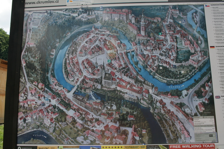 Карта города. Река Влтава делает красивый крюк в этом месте. Крюк напоминает латинскую букву S.