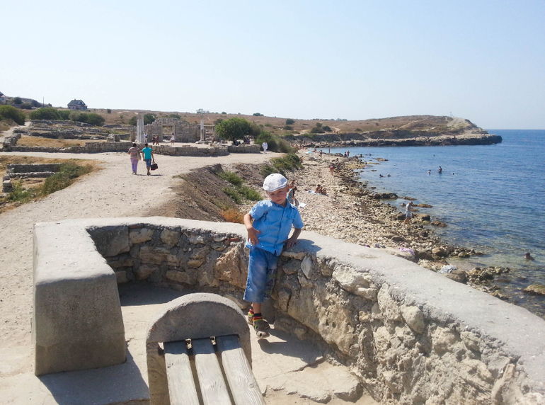 Красивейшее место в Севастополе Херсонес Таврический. Древнегреческий город, который старательно восстанавливают. Впечатлил даже Дениса, которого тяжело чем-то заинтересовать, если там нет каруселей и сладостей))) Он ходил рассматривал, внимательно слушал и охотно везде позировал для фото.