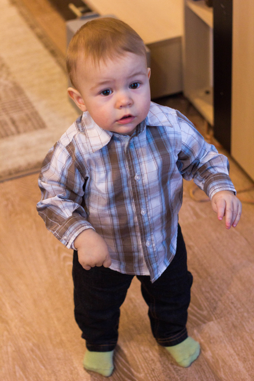 В целом очень хохотливый мальчик и может надолго чем-то увлечься, в отличии от Дениса его возраста. Сортер, книжечка какая-то или еще что-то, может долго сидеть ковыряться, рассматривать, но при этом совершенно не любит одиночества, любитель общества и компании)