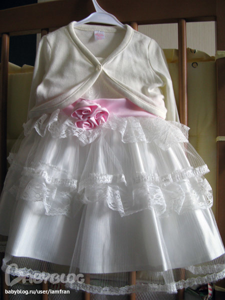 7. Комплект красивое платье молочного цвета с хлопковым подкладом + розовые пинетки. 700 рублей. Платье и болеро б/у 1 раз минут 20 на фотосессию. Пинетки 2 раза. Платье написано 92 размер, но мне кажется маломерит. Мы одевали на рост 76-77, пинетки 19 р-р.