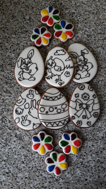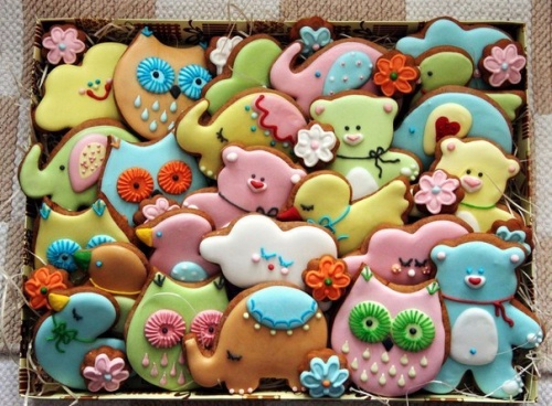 И тут еще другая техника, которая мне очень нравится и совсем не сложная, это та, что на круглом розовом и голубом пряниках. Вообще легкотня)))