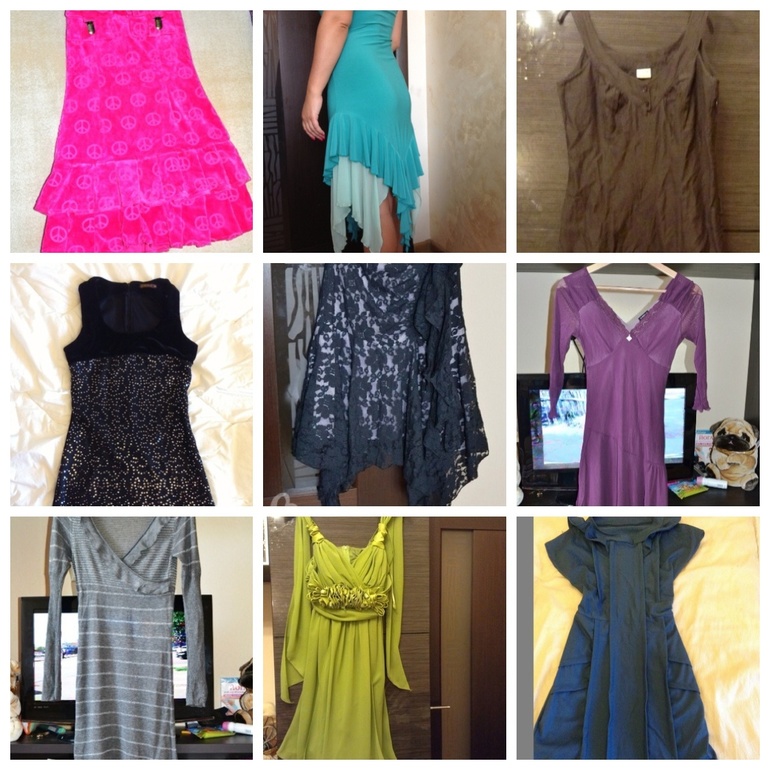Розовое велюровое платье( очень красивое, как у Барби) р 42-44 экв 1000, зеленое 44 экв 800, коричневый сарафан esprit р 44 экв 600, платье бархатное с пайетками р 44 экв 700, платье гипюровое 44 экв 1200, платье фиолетовое мотиви р 44 экв 900, вязаное серое р 44 экв 600, оливковое вечернее р 44-46 экв 2000, минее летнее из тайланда 42-44 экв 500