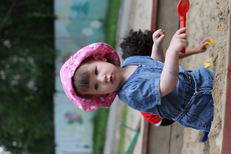 Рядом через дорогу шикарные три площадки с хорошим песком, детскими комплексами, покатушками. И детей мало! Их и эксплуатируем.
