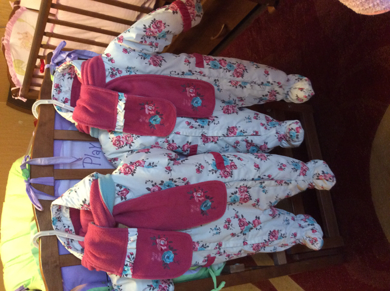 Продаю комбинезоны для девочек двойняшек, размер 9 месяцев на рост 74 см, в отличном состоянии, носили один сезон в коляске, забирать в Зеленограде ( Москва), либо Химки, телефон 89260120232 анна