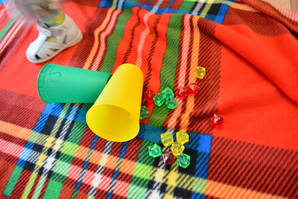 10. Поэтому со стульчика в срочном порядке перешли на пол на игры с цветовосприятием. Дала ей 3 стаканчика и бессменные и любимые кристаллы из ФиксПрайса. Сортировали, трясли, раскидывали, сосали.