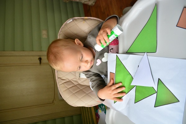 8. Танграм не пошел. Не поняла, что с ним делать. Попыталась дать ей клей и сделать аппликацию. Клей заинтересовал очень, аппликация - нет.