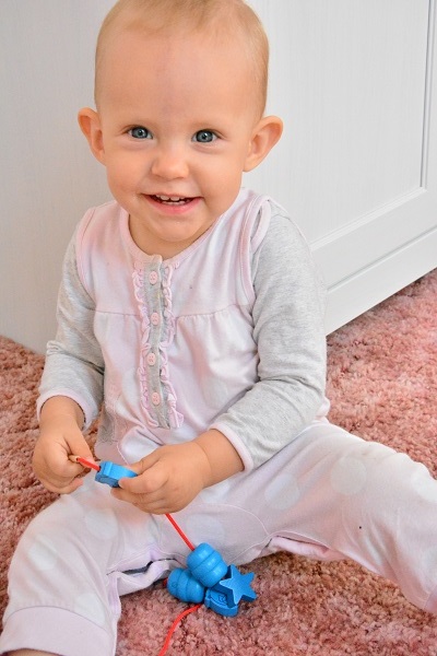 Бегает уже - не догонишь, перелезает через препятствия, забирается по лестнице на второй этаж, держась за перила. Пытается сама кушать. Обожает чистить зубы:)