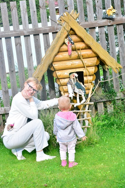Научилась убаюкивать. Теперь все, что попадает ей в руки подлежит укачиванию с положенными бай-баями и песенками. Даже пеленки.:)