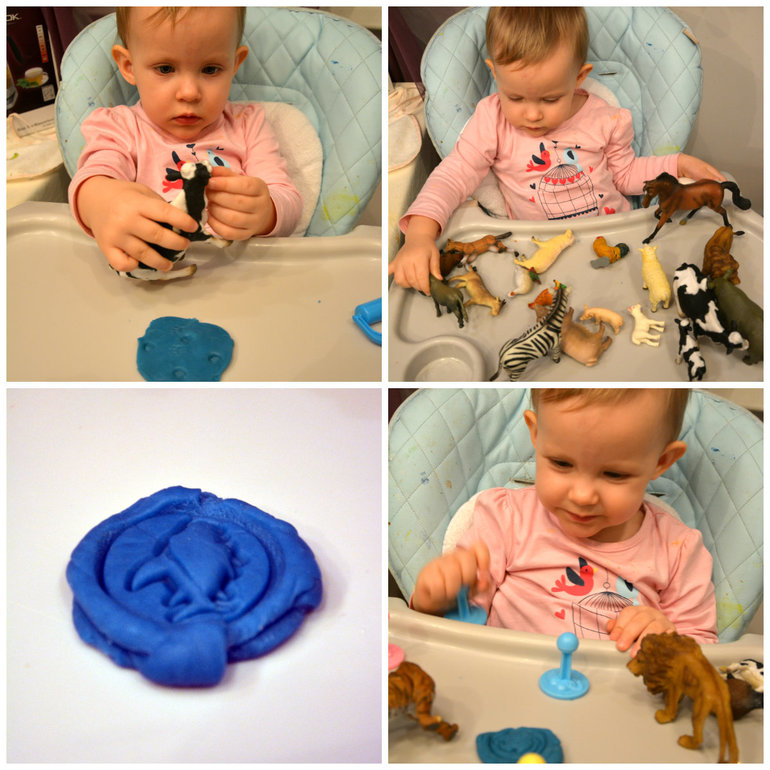 Еще мы использовали готовые штампы из набора теста для лепки. Нравится мне это тесто, оно пластичное, пахнет ванилькой, твердеет при засыхании, никуда не липнет. Ксюша всегда тоже достает, нюхает и только после этого начинает лепить:)