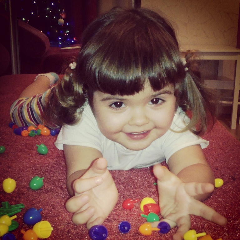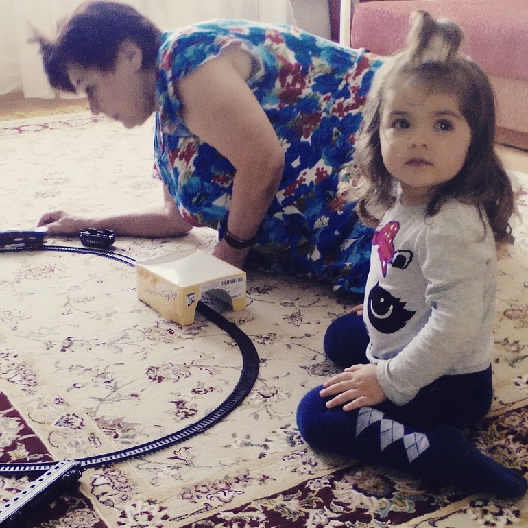 Приезжали к нам сегодня в гости бабушка и дедушка, привезли в подарок Ладуше железную дорогу, играли. Столько внимания, доченька довооольная, редко это бывает, эх. Я то росла с кучей бабушек, дедушек, братишек, тетушек, дядей, в общем тьмой родственников. А мы с Ладой в основном вдвоём..