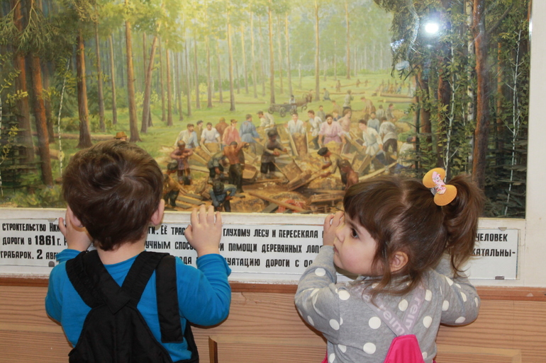 Сегодня с подругой и малышами сходили в краеведческий музей нашего города. Конечно, детей больше всего впечатлил зал с экспонатами животных. Да еще стенд с паровозами. Лада обращала внимание на старинные игрушки, представленные в залах. А в целом она пыталась бегать по залам, а я носилась за ней с фотоаппаратом и просила не бегать))