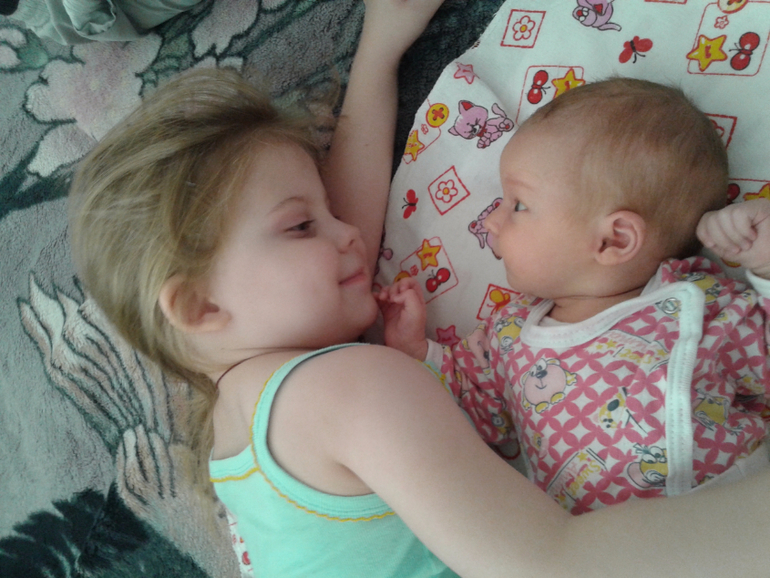Моя дюймовочка хорошо набирает в весе. Точно по цифрам не скажу сколько так как дома весов нет, а поликлиника на карантине. Но визуально очень заметно. Округлились щечки появилась попка и складочки))))) Юличка, старшая доча, очень любит свою сестренку. Постоянно просит её погладить и поцеловать, это так мило)))). Иметь двоих детей - это конечно же большое счастье! Но скажу честно, тяжеловато. Памятник тем у кого их больше! Первый день дома с двумя детьми прошёл быстро, но к вечеру, мы с мужем валились с ног.)))) Второй день в кипише прошёл ещё сложнее. Старшая дочь болела к тому же, не ходила в сад. Все ходили с оксолинкой под носом. Везде были расставлены тарелочки с чесноком.