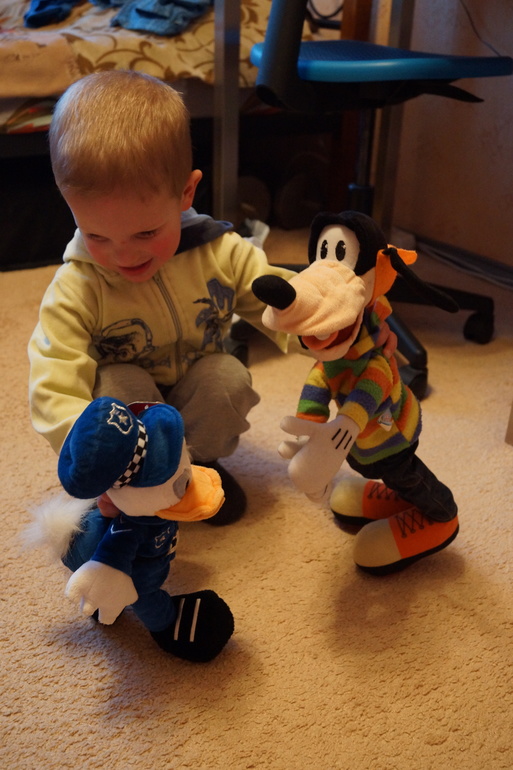 А там!!!!!!!!!!!!! Утенок Дональд Дак!!!!!!!! Максим тут же бежит знакомить его с Гуффи! Подружились, все хорошо!!!