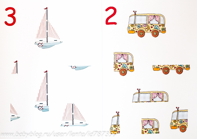 Вот два задания: на совмещение 2 и 3 кусочков. Можно просто ткнуть пальчиком, а можно обвести карандашом или ручкой.