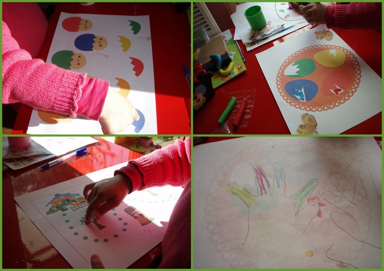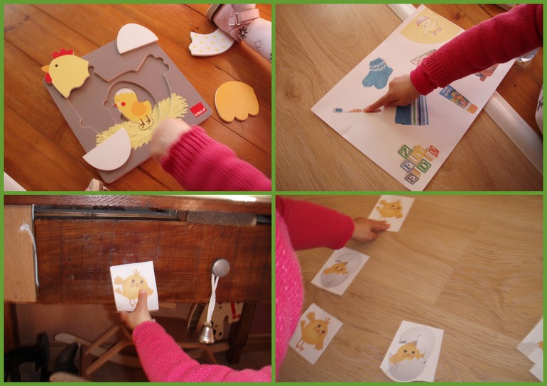 Собирали разбежавшихся цыплят и находили им пары. Обычно она довольно-таки легко справляеься с этим заданием, а сегодня было сложновато, ну или просто не очень хотела заниматься ))