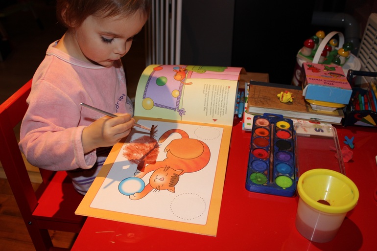 Наконец-то у меня ребенок понял, как рисовать красками! До этого было только макание кисточки в банку с водой и растирание воды до дыр на бумаге. Теперь она наконец-то поняла, что рисовать одной водой не очень интересно и стала использовать краски. Ура! Моей радости нет предела! (Рисование правда закончилось варением супа в том же стаканчике, но это мелочи )))
