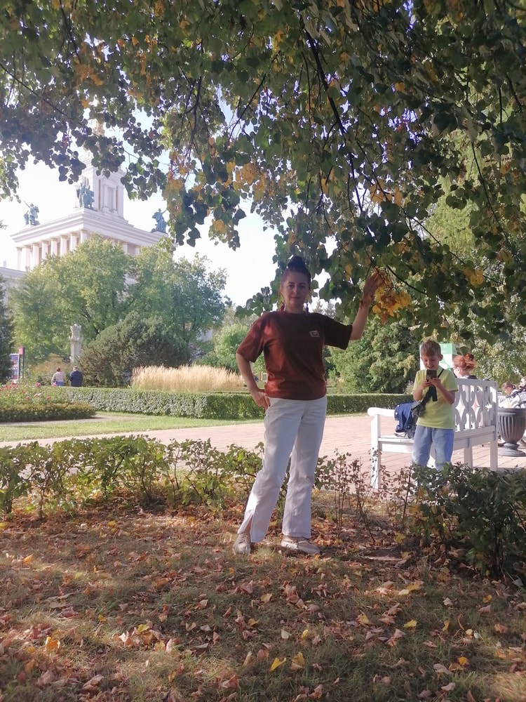 Народу на ВДНХ всегда много, неважно выходные или будни, но и площадь огромная, можно выбрать немноголюдные аллеи.