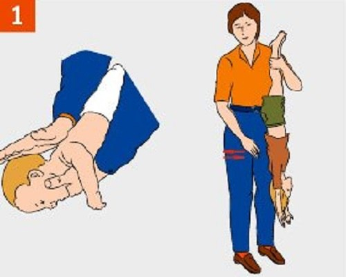 3. Если ребенок подавился маленьким предметом или кусочком пищи, нужно поднять его за обе ноги или же вызвать рвоту, нажав на корень языка.
