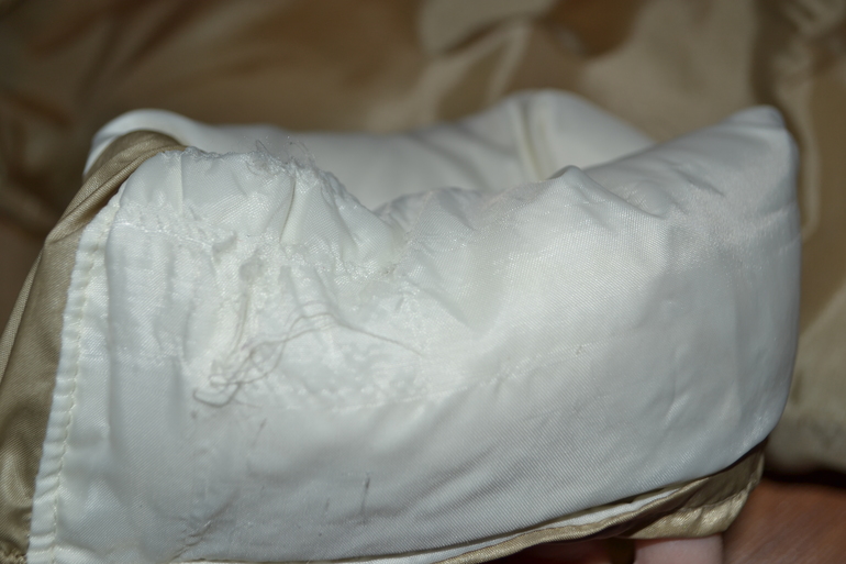 при фотографировании обнаружила затяжки на подкладе внизу штанин, видимо от обуви...