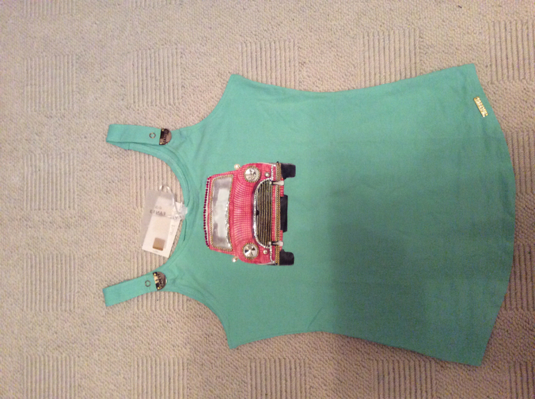Милая футболка мятного цвета принт машинка расположен спереди изделия и на спинке, фирма EAN13 Италия