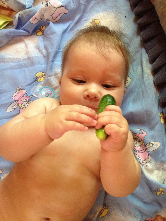 Единственный мой корректив - каждый продукт вводим мы не по неделе, а по 3 дня (посоветовала педиатр, ссылаясь на наш возраст и хорошо набираемый вес). Сейчас уже введены кабачок и цветная капуста, сегодня начинаем брокколи. Особых негативных реакций замечено не было, ребенок кушает все с большим удовольствием и аппетитом (заметила, что кабачок нравится больше капустки). Сама отбирает у меня ложку и облизывает ее)) Уже съедаем 80-100 гр.