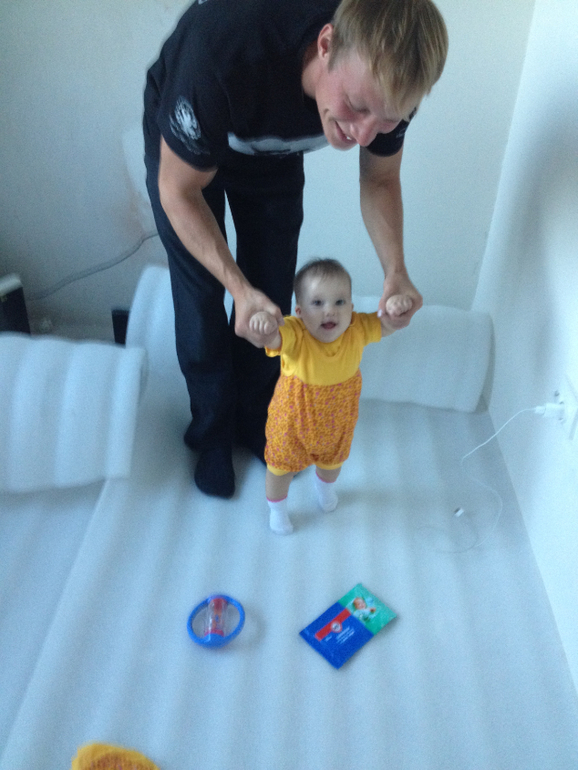 - вчера с папой первый раз пошли. Он держал за обе ручки и шагал, Элинка тоже шагала)