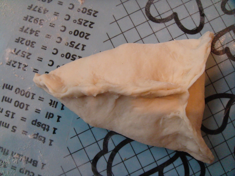 Третий способ: залепить 2/3 шва пирожка. Затем слепить треугольником оставшуюся часть: