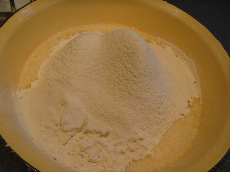 Замесить тесто, добавив при необходимости муки (тесто не должно быть крутым!):