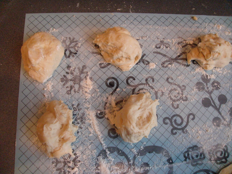 Оставшееся тесто разложить на присыпанном мукой столе комочками: