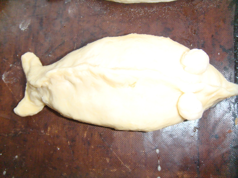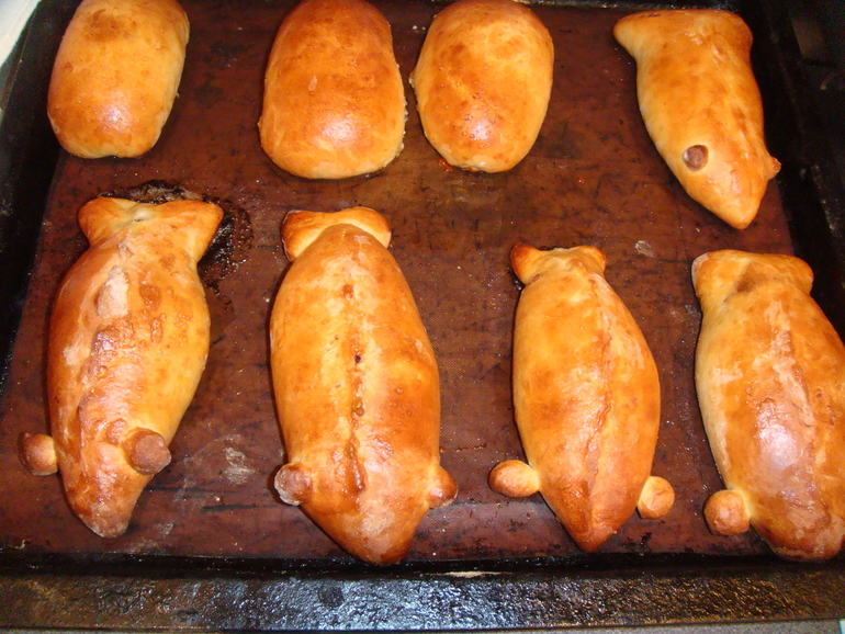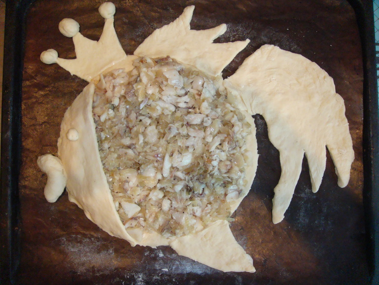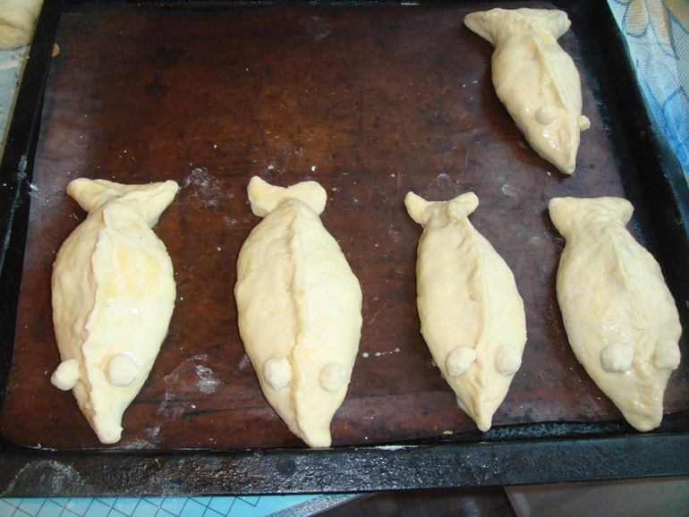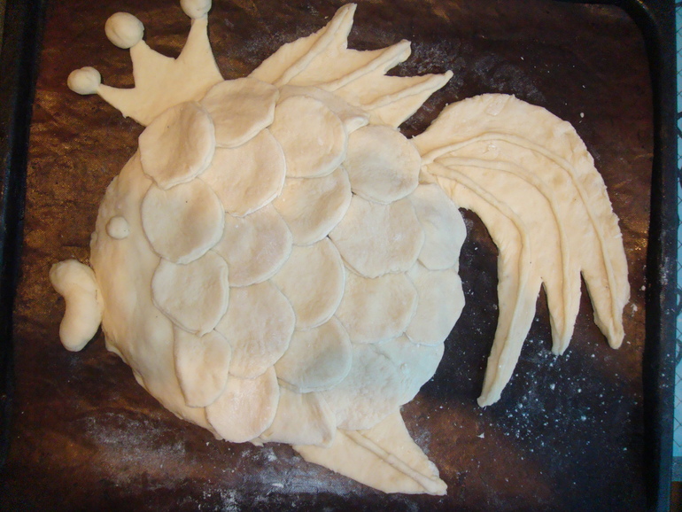 Дать подойти рыбешкам на противне. Смазать яйцом: