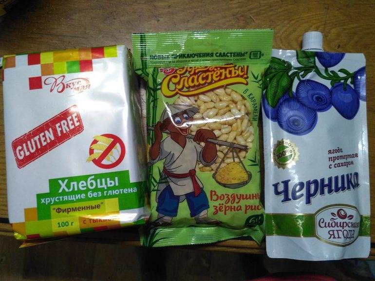 Из покупных сладостей: мармелад (обязательно читать состав, лединец петушок на палочке (читать состав), чипсы лейз с солью (в составе картофель, масло и соль), попкорн, сладкая вата, воздушный рис, кукурузные палочки, хлебцы (читать состав), макароны рисовые, макароны кукурузные (чаще МакМастер), манка кукурузная, мука рисовая/кукурузная/мучная смесь, продаётся ещё печенье, но его сложно найти (фото нет)