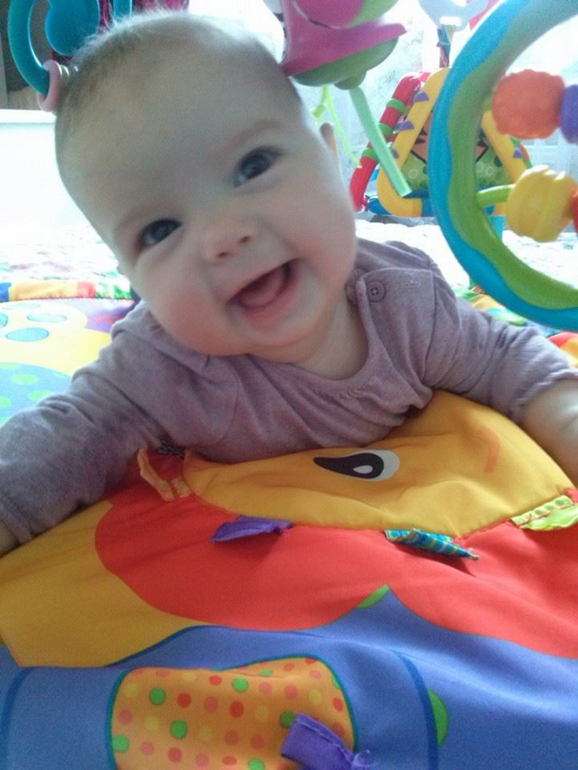 Из умелок Мия переворачивается со спины на живот (причем постоянно), с живота на спинку. Пытается ползти. Смешно поднимает попку и отталкивается ногами. На животе поднимается на вытянутых руках. Перемещается по всей кроватке. Когда первый раз так сделала - я даже на секунду испугалась. Захожу в комнату, а ребенка в кроватке нет! А она в самом конце кроватки перпендикулярно ей играет погремушками. В начале пятного месяца обнаружила свои ноги. Теперь "В рот мне ноги!" - это не просто фраза:))) Любит погремушки, шуршалки, пищалки, и все, что можно запихнуть в рот. Улыбается постоянно, много смеется. Раньше смех был всегда неожиданностью, то есть непонятно было, что ее рассмешило. Сейчас уже это ответ на какие-то наши действия. Просекла прикол с куку:) Еще ее смешит, когда я говорю "Готова?" и строгим голосом "Мия, где зубы уже?". Стала больше самостоятельной. Может играть хоть пару минут сама, сама берет игрушки, засовывает в рот себе пустышку.