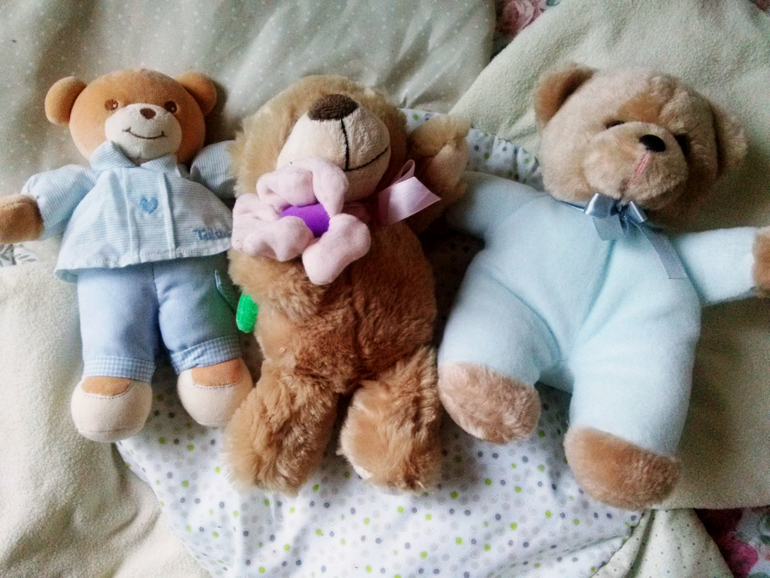 Медведи и тренькающий попугай (который очень понравился Мие, кстати, но она не может нажать на него)
