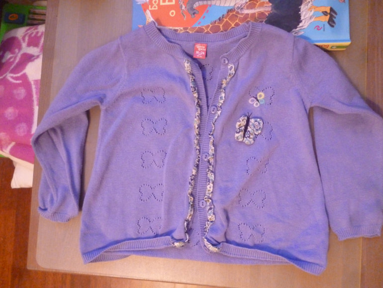 1. Кофточка, есть еле заметные пятнышки, под мышкой немного разошелся шов. Размер примерно на 1.5-2 года